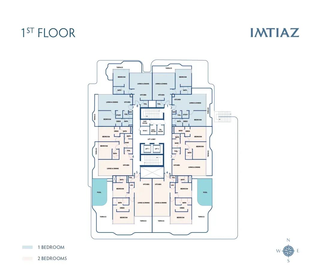 涵蓋3-5房的住宅以及6房的超豪華頂層公寓,所有戶型均在寬敞的露臺(tái)上設(shè)有無(wú)邊泳池。