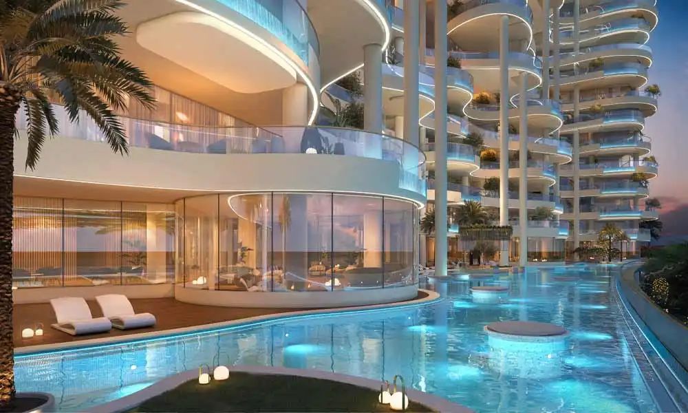 該項(xiàng)目以海浪為靈感,立面呈現(xiàn)柔和優(yōu)雅的流動(dòng)線條,與自然景觀和諧相融?,F(xiàn)代與自然的結(jié)合通過(guò)貫穿建筑的落地玻璃窗實(shí)現(xiàn),最大化引入自然光線,并巧妙融合迪拜壯闊天際線與寧?kù)o海景,營(yíng)造室內(nèi)外無(wú)界銜接的奢華體驗(yàn)。