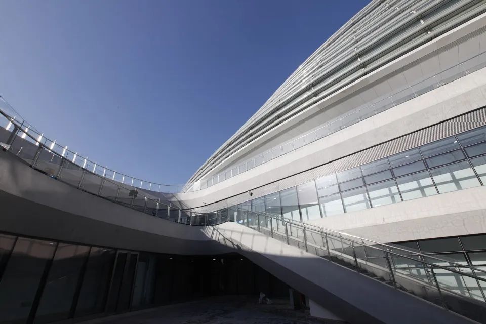 如同“冰痕”一般的外幕墻,采用三維建模進行排版、加工及制作,把每一處形狀、角度、面積、尺寸和曲率數(shù)據(jù)逐一設計、逐一編號、逐一定制,最終像拼圖一樣重新組合,拼接成一個整體“冰壇”。