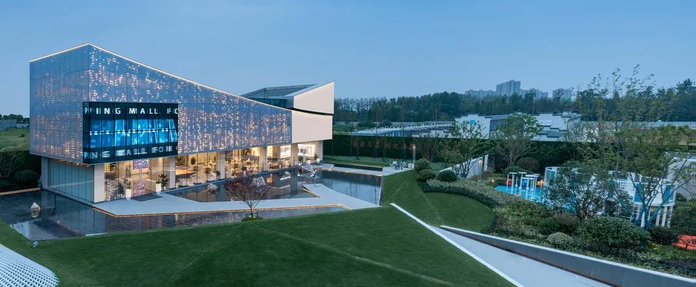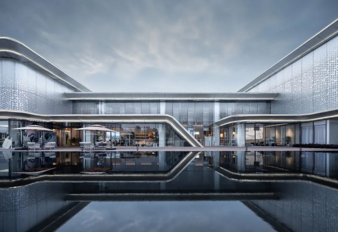 漳州新城·吾悅首府示范區(qū),建筑材料選擇陽(yáng)極氧化穿孔復(fù)合板配以玻璃幕墻來(lái)分割和界定空間,塑造空間的流動(dòng)性和整體性。