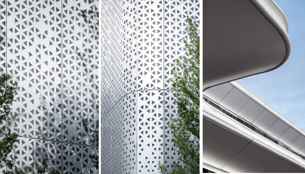 立面弧度造型及漸變穿孔鋁板細(xì)節(jié)