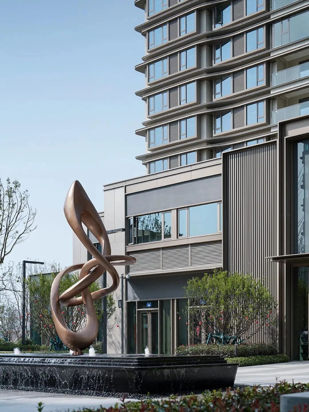 寧波·星湖灣在外立面的打造上,增加橫向弧板強(qiáng)化橫向線條肌理,輕盈的橫向線條凸顯濱水建筑的流動(dòng)感,與星湖優(yōu)越的自然景觀相輔相成。