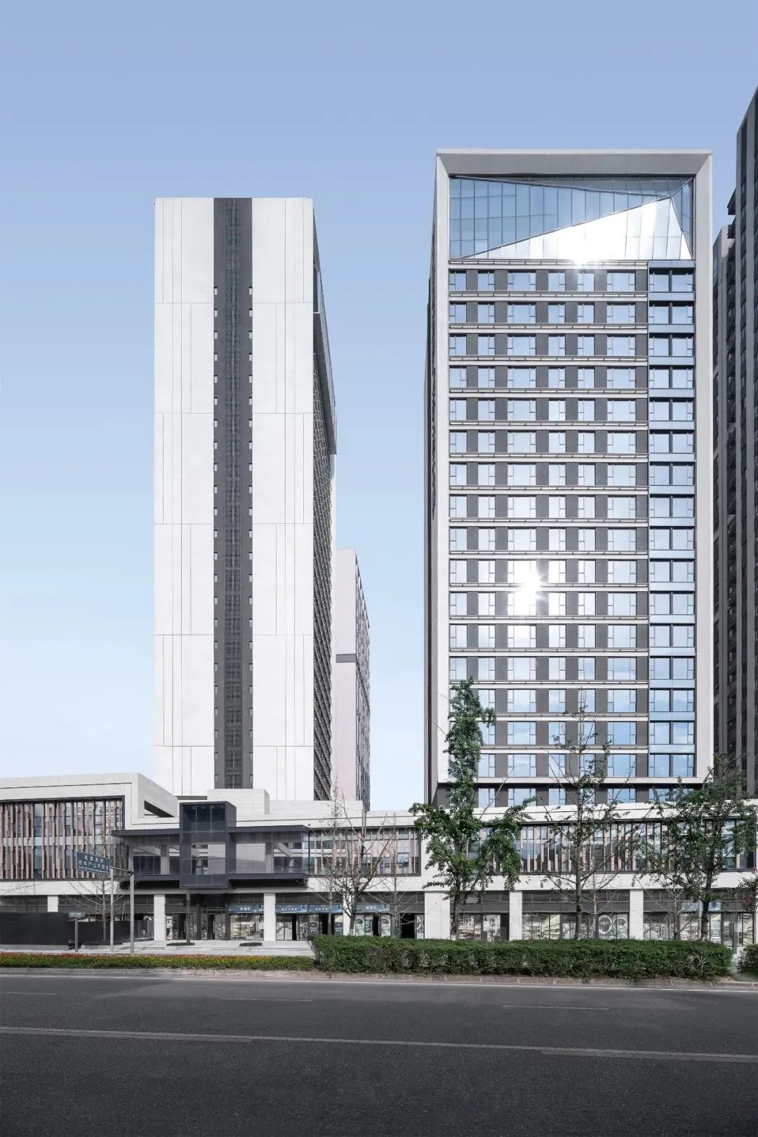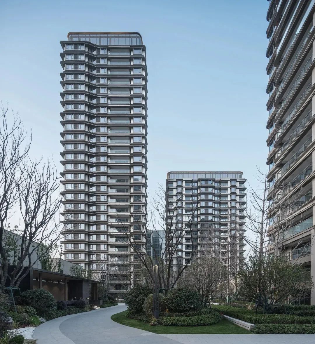 杭州仁恒置地∣香港置地·前灣國際社區(qū)住宅屋頂?shù)拇┛卒X板強(qiáng)調(diào)建筑的藝術(shù)感和方向性。