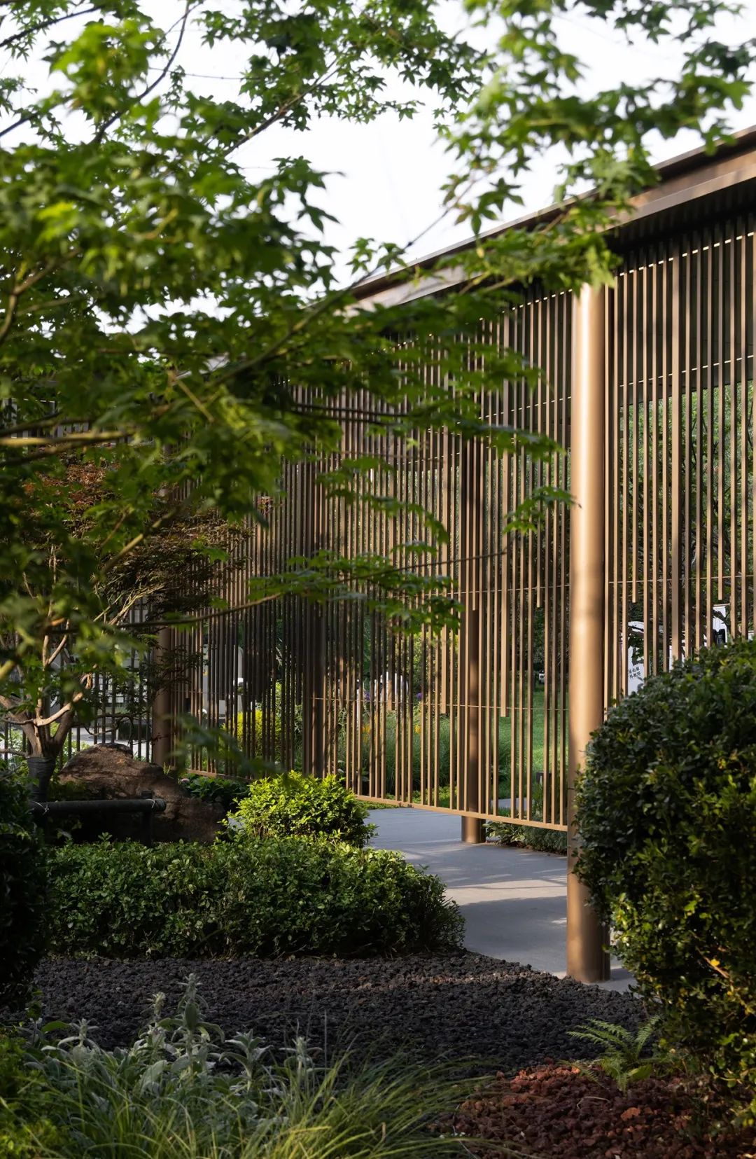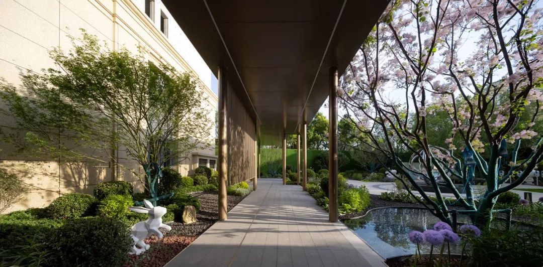 北京曉風(fēng)印月實(shí)景示范區(qū)主體硬質(zhì)材料選擇PC磚與火山巖。PC磚因其較佳的硬質(zhì)場地使用感受,為孩子們親近植物提供便利?;鹕綆r的運(yùn)用則增加了場地層次,其透氣易排水的特性對植物友好,同時可以減少因綠化面積過多所帶來的養(yǎng)護(hù)負(fù)擔(dān)。以置石點(diǎn)綴造園,于細(xì)節(jié)處見一方天地。