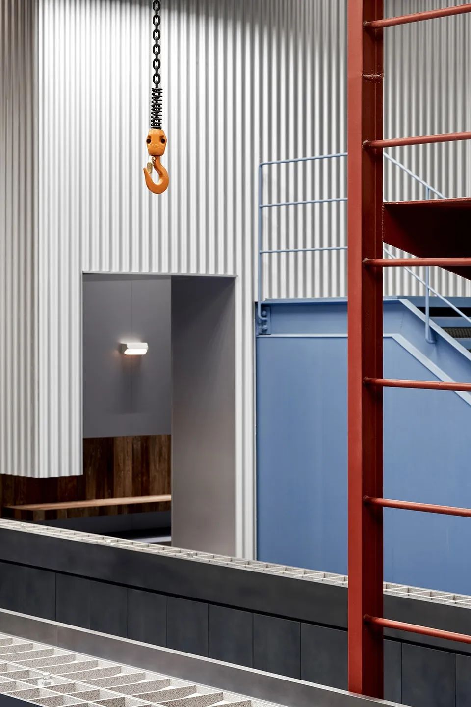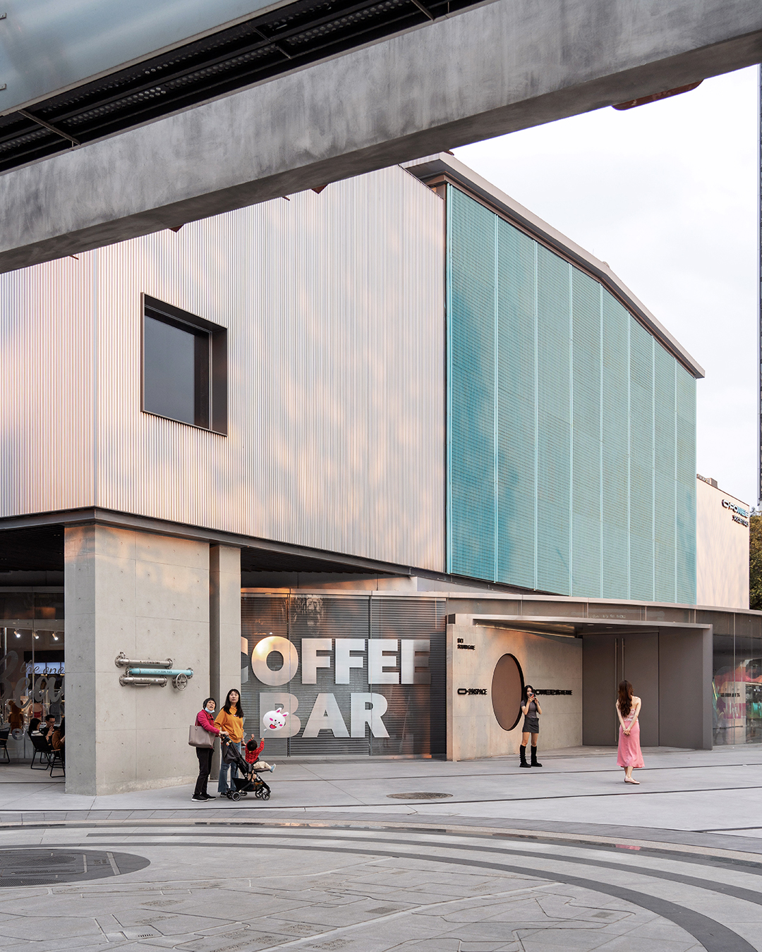 室內(nèi)的波浪板會給人一種層層推進的視覺感,將空間一鏡到底。