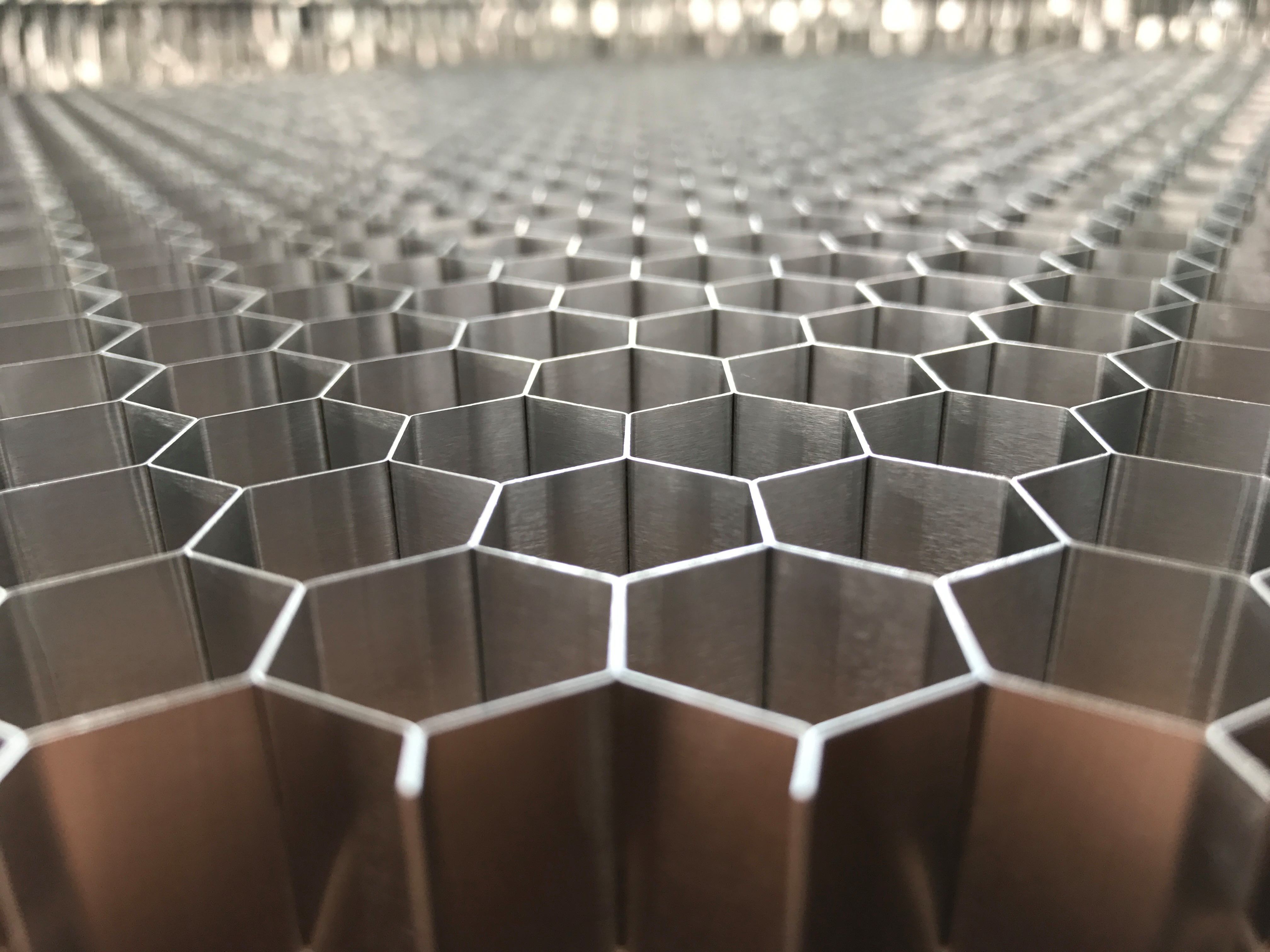 1、蜂窩芯厚度達(dá)標(biāo),蜂窩芯厚度一般在7mm~9mm,吊頂蜂窩芯一般采用5~6mm蜂窩芯;密度越密,對外力的反彈性就越強(qiáng),支撐點(diǎn)越多,板材越平整。能有效地吸收沖擊能量,起到減震、防撞的作用,從而保護(hù)墻面免受破損。