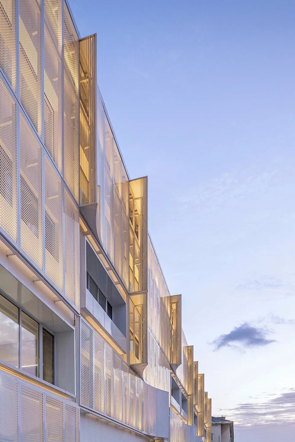 拉網(wǎng)鋁單板在陽光或燈光的照射下,會(huì)產(chǎn)生富有層次的光影變幻。這種視覺效果會(huì)使得建筑主體更加富有獨(dú)特靈動(dòng)的感官體驗(yàn),極具整體感和層次感,而孔眼的形狀和大小的變化,也會(huì)產(chǎn)生不同的光影交錯(cuò)的效果。