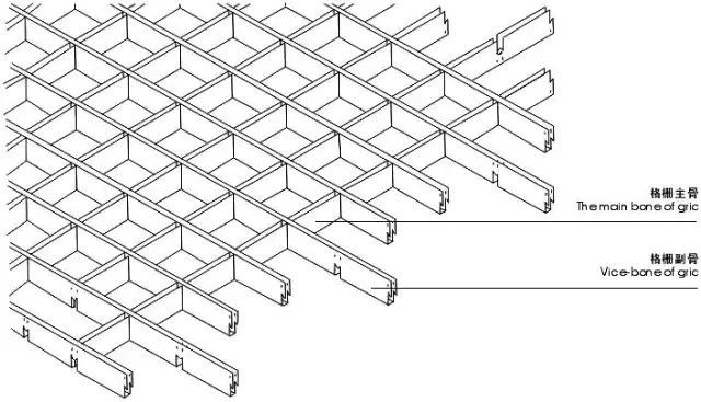 局部格柵的拼裝,單體與單體、單元與單元,作為格柵吊頂?shù)母挥许嵚筛械膱D案構(gòu)成因素,必要時(shí)應(yīng)盡可能在地面拼裝完成,然后再按設(shè)計(jì)要求的方法懸吊。