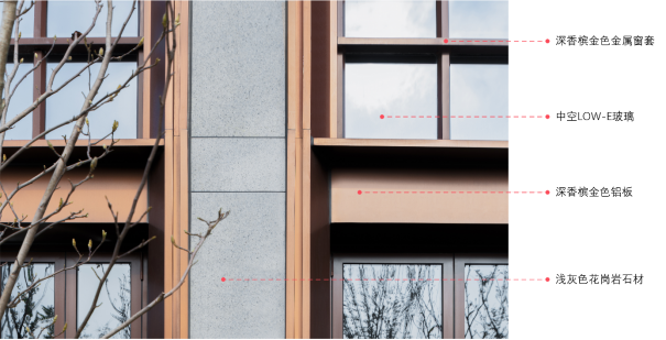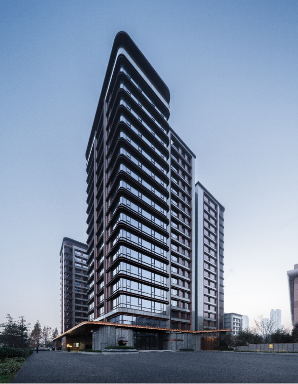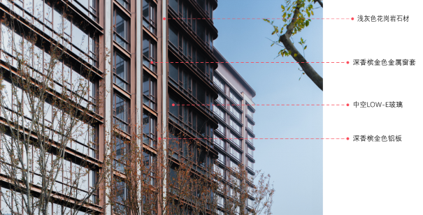 中聯(lián)?和府在立面設(shè)計(jì)上大量的玻璃幕墻組成了映水映天的主要界面,藍(lán)灰色花崗巖石材與玻璃在同一個(gè)色相內(nèi)延續(xù)著清冷雅致的底色,再輔以銅色的金屬收邊和線條勾勒,鋪開一幅力的圖案,美的網(wǎng),在居住環(huán)境中加入更親人的溫暖元素。