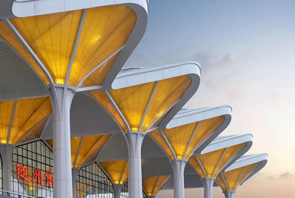 湖北隨州南站在單元體外側(cè)覆蓋了ETFE膜材。ETFE膜材擁有良好的耐久性、阻燃性及透光性能,但是對(duì)拉力和溫度變化較為敏感,為保證建筑中“葉片”最終形成飽滿、光滑的曲面形態(tài),項(xiàng)目團(tuán)隊(duì)需要對(duì)索網(wǎng)系統(tǒng)和膜材的張拉有著極其精準(zhǔn)的控制。