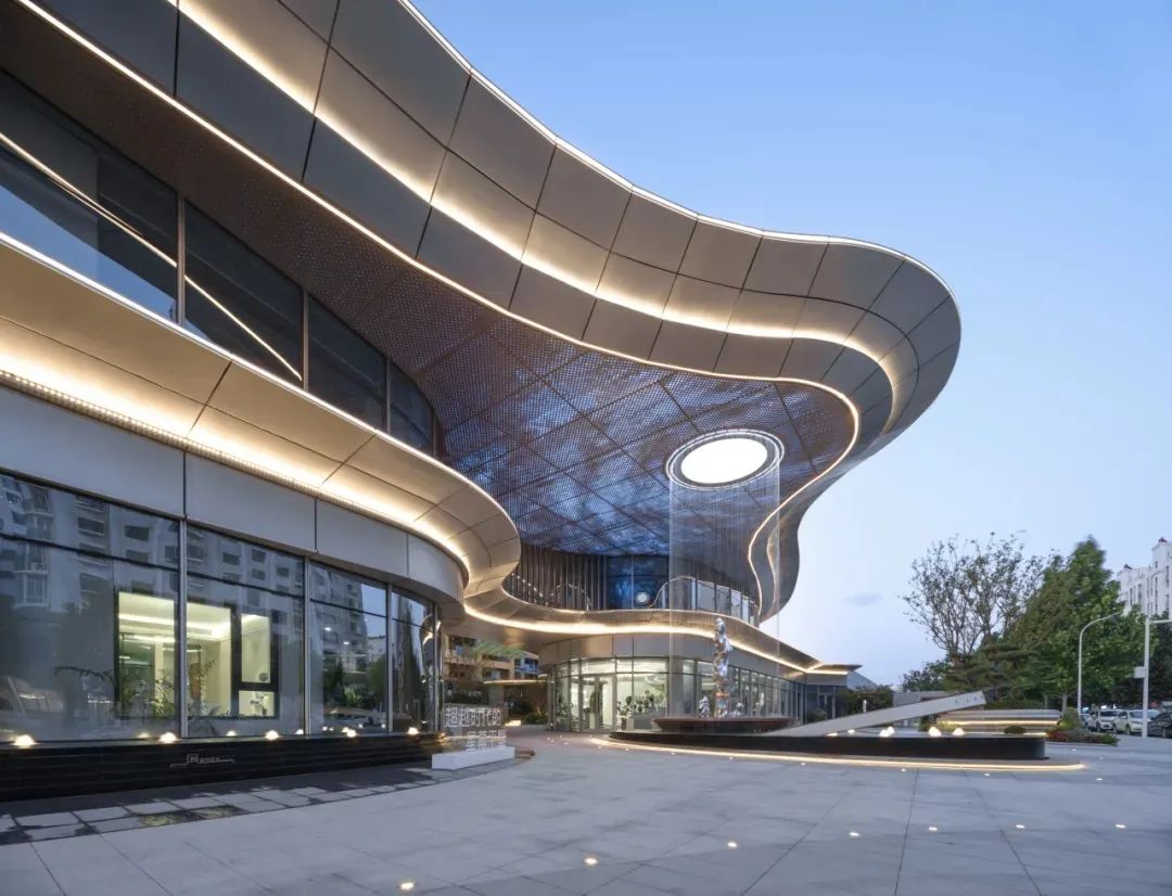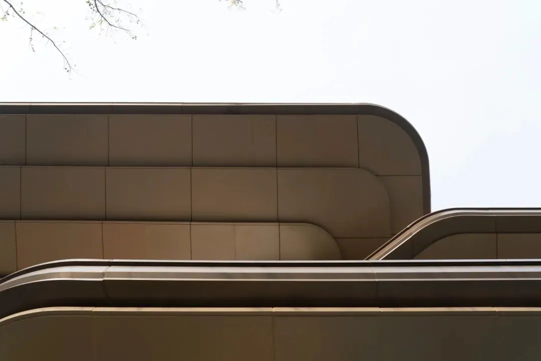 同時(shí)通過(guò)精準(zhǔn)控制鋁板與玻璃的分縫及交接構(gòu)造節(jié)點(diǎn),保證鋁板與玻璃的自然轉(zhuǎn)合交接,使建筑造型具有自由流淌的曲面感,彰顯品質(zhì)與美學(xué)的高度融合。02