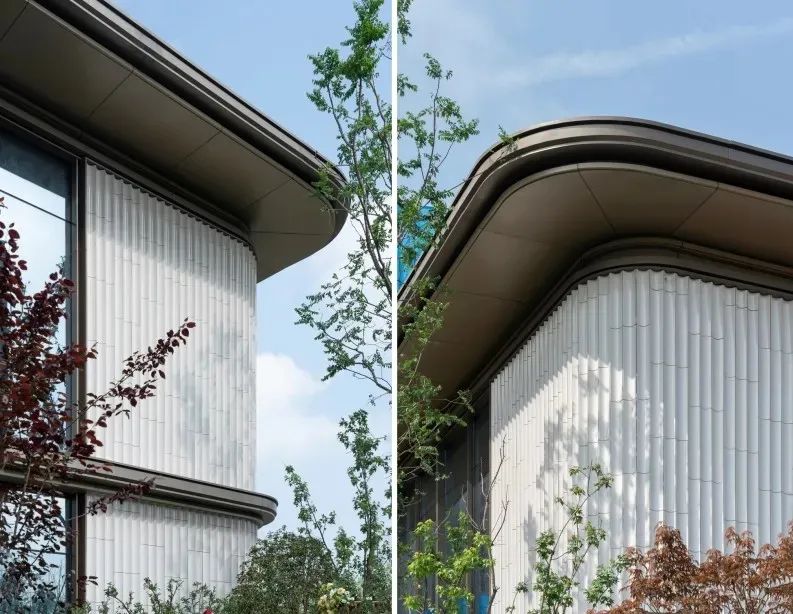 整體來(lái)看,圓角結(jié)合層層上升的屋檐,如水波漣漪,通過(guò)圓弧的建筑語(yǔ)言以及材料的層疊組合,體現(xiàn)了建筑的自由、流動(dòng)和韻律,形成了建筑獨(dú)特的標(biāo)識(shí)性。03