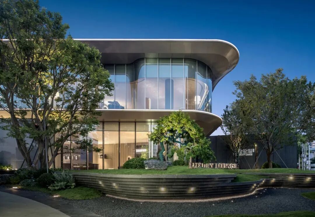 示范區(qū)建筑以“未來(lái)城市+星際飛船”為設(shè)計(jì)概念,呈現(xiàn)一個(gè)以現(xiàn)實(shí)建筑承載未來(lái)空間形象的歸家體驗(yàn)。靈動(dòng)的曲線交疊形成獨(dú)特的建筑造型