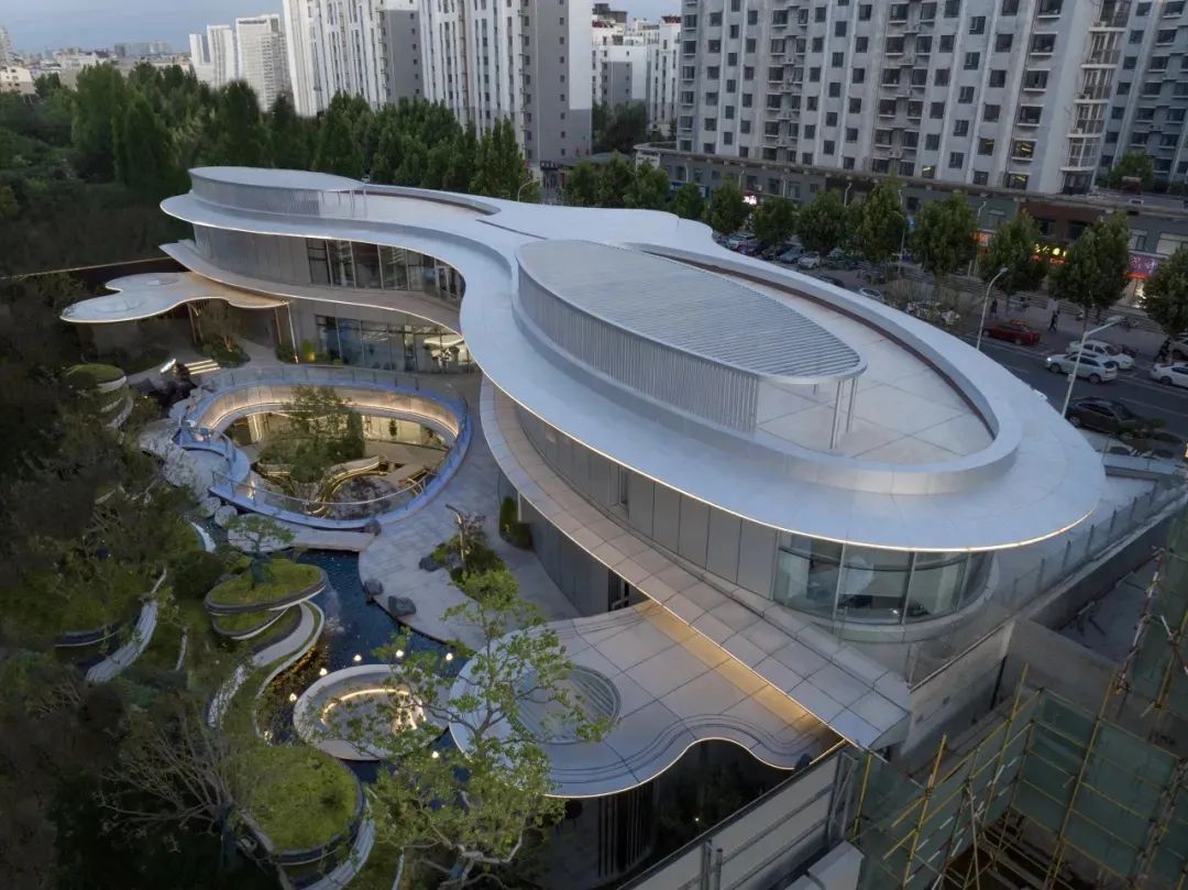 建筑立面從極簡(jiǎn)美學(xué)中汲取靈感,大面采取弧形曲線勾勒,利用弧度變化展現(xiàn)輕盈舒展的氣質(zhì)。建筑實(shí)景 建筑攝影:羅漢工作室